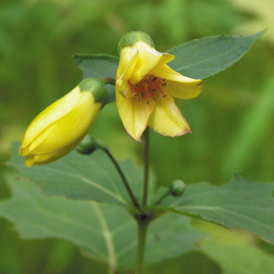 Essential perennial for structure and contrast in the shade garden. Bold and shrub-like, with gray-green maple-shaped leaves and pendant clusters of waxy pale yellow flowers in late summer.