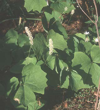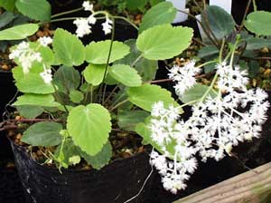 Achlys japonica Number 25 50 100 500 1,000Zones 4-8 Fall 2003 US$150 US$275 US$500 N/A N/ARare Japanese perennial for cool shade and humus-rich soil, not too dry. Attractive lobed leaves form a carpet as the plant spreads by underground stems. Dense fuzzy spikes of white flowers appear above the leaves.