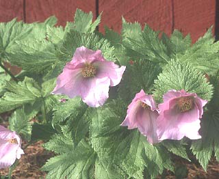 Glaucidium palmatum Number 25 50 100 500 1,000Zones 4-7 Fall 2003 US$213 US$400 US$750 US$3,500 N/AStar of the early spring garden, this famous Japanese woodlander unfolds its large silky pale purple-pink blossoms while most plants are still sleeping. Moist, well-drained soil in cool shade. Blooming size. Best in cool-summer areas.