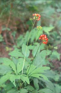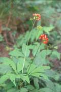 Panax japonicus Number 25 50 100 500 1,000Zones 4-8 Fall 2003 US$100 US$188 US$350 US$1,625 US$3,000Rare native Japanese ginseng, easily grown in humusy soil in shade. Flowers are not showy but the clusters of shiny, vivid red fruits are glorious, displayed high about the compound leaves from summer to early fall.