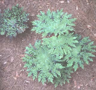Syneilesis palmata Number 25 50 100 500 1,000Zones 4-8 Fall 2003 US$100 US$188 US$350 US$1,625 US$3,000Woodland composite from Northeast Asia. I spring the new leaves are silky silvery umbrellas, a delight to see and touch. In summer, fuzzy white flowers bloom on tall stalks.