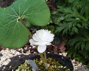 Sanguinaria canadensis 'Multiplex' Number 25 50 100 500 1,000Zones 4-8 Fall 2003 US$225 US$438 US$850 N/A N/AThe gorgeous full-double form of our native bloodroot, long familiar to good gardeners, but seldom available. Easy in woodsy soil in light shade. Blooming size plants.