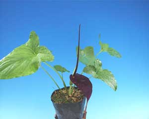 NEW!Typhonium divaricatum Number 25 50 100 500 1,000Zones 7-9 Fall 2003 US$150 US$275 US$500 N/A N/AAroid from Ryukyu Island, very large leaves, large red/purple flowers.