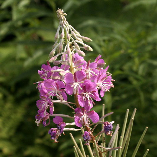 Chamerion angustifolium 草丈40-120cm、蘭の様な可憐な花に柳の様な細い葉を持つ。切花にも向く。