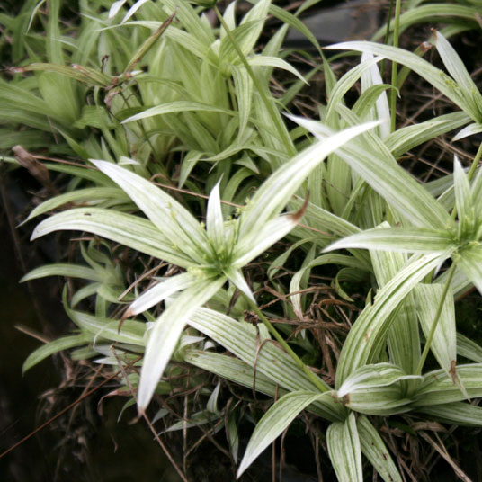 白散縞斑シペラス 【014-005】 カヤツリグサ 2019.10.26 白縞斑が涼しげな選抜品種。苔玉に向く。 開花期 5-7月 冬季 落葉 日当たり 明るい日陰 耐寒性 強 水やり 普通 施肥 春・秋に油粕肥料、生育時に有機液肥を2週間に1回程度 用土 山野草の土/基本培養土
