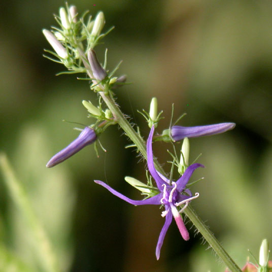 シデシャジン 【016-016】 キキョウ 2019.10.26 花弁が裂けて細くなったような変わった花形のシャジンの仲間。 開花期 4-5月 冬季 落葉 日当たり 日向 耐寒性 強 水やり 普通 施肥 春・秋に油粕肥料、生育時に有機液肥を2週間に1回程度 用土 山野草の土/基本培養土