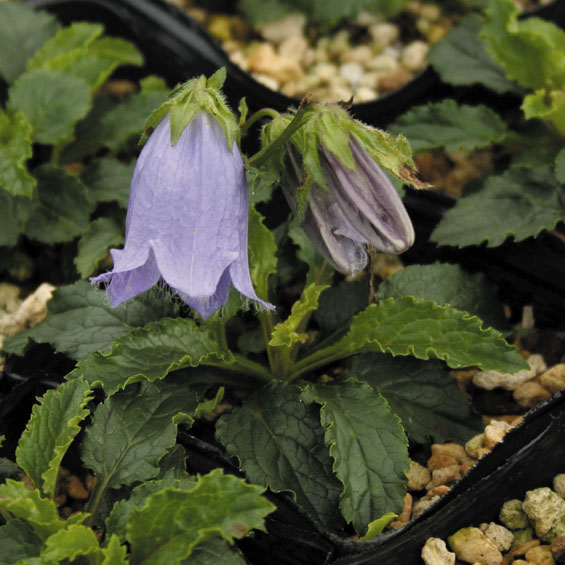 チシマキキョウ×ホタルブクロの極小型種。可憐な薄青紫色の花。
