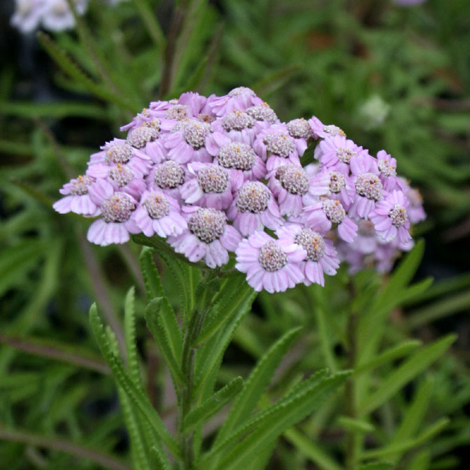 アギレア 「ラブパレード」 【017-072】 キク 2019.10.26 白い花が次第にピンク色に染まる。 開花期 6-8月 冬季 落葉 日当たり 日向 耐寒性 強 水やり 普通 施肥 春・秋に油粕肥料、生育時に有機液肥を2週間に1回程度 用土 山野草の土/基本培養土