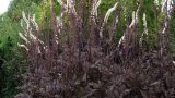 セリのような細かな葉が特徴のオウレン。早春に葉の上で咲かせる可憐な花と、花後に付ける面白い形の実が魅力。冬季には紅葉する。