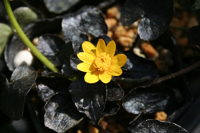 紫葉姫リュウキンカ 【021-010】 キンポウゲ 2019.10.26 黒紫色の葉が特徴の強健品種。 開花期 4-6月 冬季 落葉 日当たり 明るい日陰 耐寒性 強 水やり 普通 施肥 春・秋に油粕肥料、生育時に有機液肥を2週間に1回程度 用土 山野草の土/基本培養土