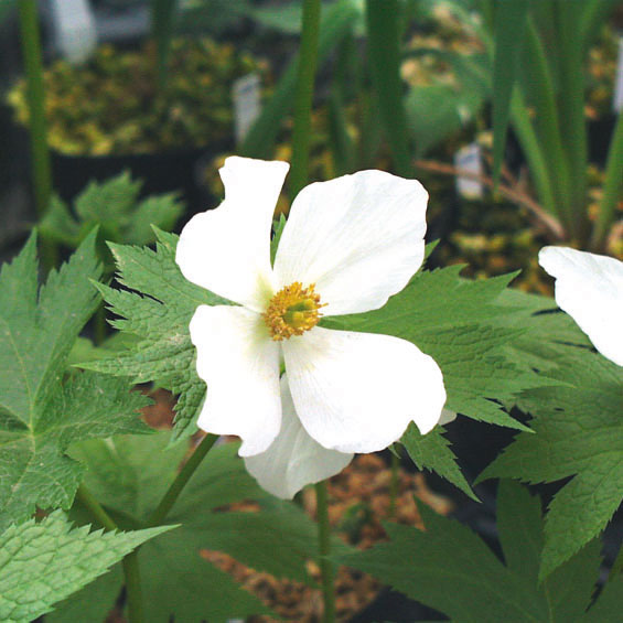 キンポウゲ日本を代表する宿根草の白花品種。透明感のある純白の花が可憐で華やか。出芽時から花後までは日向で管理する。冬の乾燥に注意。