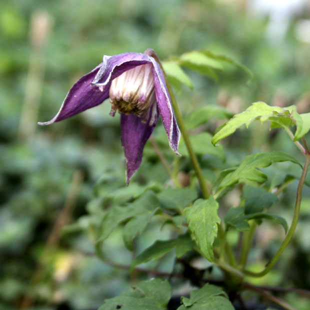 深山ハンショウヅル 【021-101】 キンポウゲ 2019.10.26 藤色の萼に白い花弁が特徴の可憐なつる性植物。 開花期 6-8月 冬季 落葉 日当たり 日向 耐寒性 強 水やり 普通 施肥 春・秋に油粕肥料、生育時に有機液肥を2週間に1回程度 用土 山野草の土/基本培養土