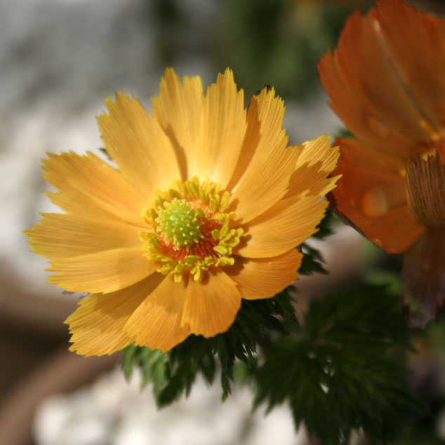 福寿草「紅撫子」 【021-123】 キンポウゲ 2019.10.26 朱赤色でフギレ花弁の撫子咲き品種。 開花期 1-3月 冬季 落葉 日当たり 明るい日陰 耐寒性 強 水やり 普通 施肥 春・秋に油粕肥料、生育時に有機液肥を2週間に1回程度 用土 山野草の土/基本培養土