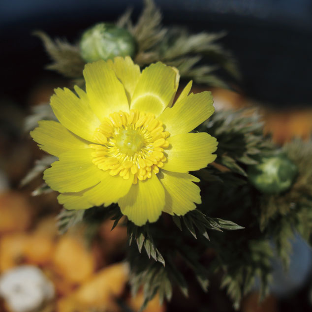 福寿草「大和」 【021-163】 キンポウゲ 2019.10.26 ナデシコ咲きの黄花品種。 開花期 1-3月 冬季 落葉 日当たり 明るい日陰 耐寒性 強 水やり 普通 施肥 春・秋に油粕肥料、生育時に有機液肥を2週間に1回程度 用土 山野草の土/基本培養土