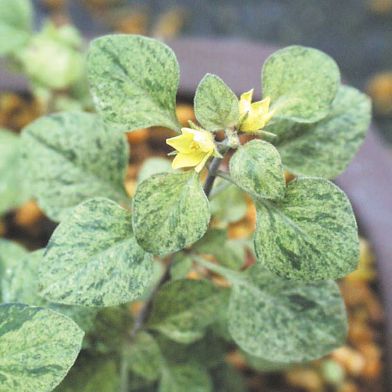散斑コナスビ「三坂錦」 【027-006】 サクラソウ 2019.10.26 小型で黄色の小さな花を咲かせるコナスビの斑入り品種。当園オリジナルの珍品。 開花期 5-8月 冬季 落葉 日当たり 明るい日陰 耐寒性 強 水やり 普通 施肥 春・秋に油粕肥料、生育時に有機液肥を2週間に1回程度 用土 山野草の土/基本培養土
