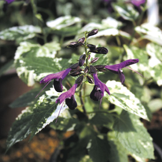 白虎斑アキギリ 【030-027】 シソ 2019.10.26 ややピンクを帯びる白虎斑の美麗葉選抜品種。葉やけに注意。 開花期 7-11月 冬季 落葉 日当たり 明るい日陰 耐寒性 強 水やり 普通 施肥 春・秋に油粕肥料、生育時に有機液肥を2週間に1回程度 用土 山野草の土/基本培養土