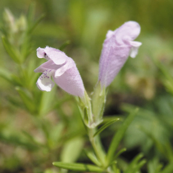 筒状の花を咲かせるムシャリンドウの桃花品種