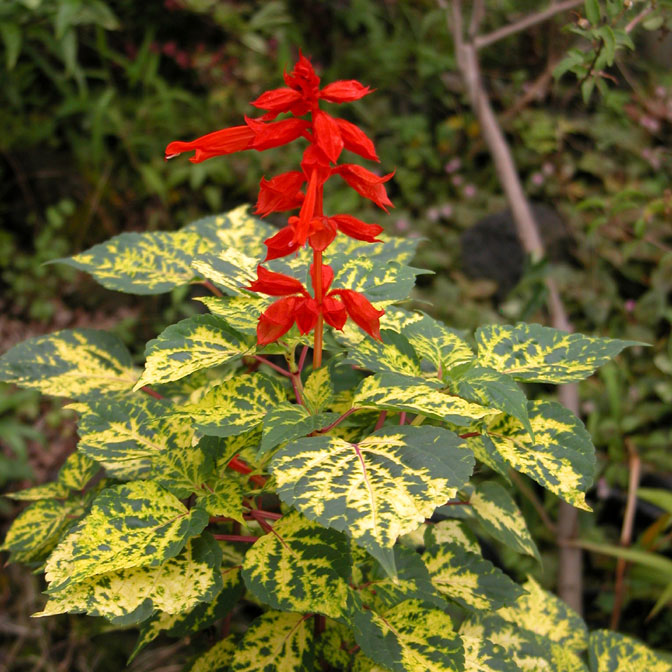 虎斑サルビア 【030-039】 サルビア 2019.11.04 亀甲虎斑の木立サルビア。イギリスより導入の珍品。 開花期 5-7月 冬季 落葉 日当たり 日向 耐寒性 普通 水やり 普通 施肥 春・秋に油粕肥料、生育時に有機液肥を2週間に1回程度 用土 山野草の土/基本培養土