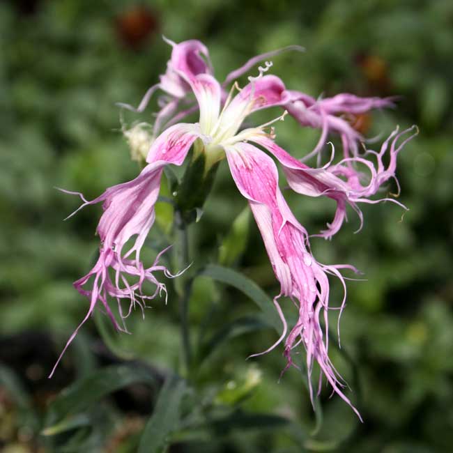 伊勢ナデシコ 【039-046】 ナデシコ 2019.10.26 大輪でフギレの強い花は垂れ下がる。伝統園芸植物。 開花期 6-8月 冬季 落葉 日当たり 日向 耐寒性 強 水やり 普通 施肥 春・秋に油粕肥料、生育時に有機液肥を2週間に1回程度 用土 山野草の土/基本培養土