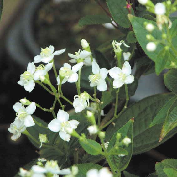 中国より導入した丸葉で這う性質のハシカンポクの仲間。開花期 8-10月 冬季 常緑 日当たり 明るい日陰 耐寒性 普通 水やり 普通 施肥 春・秋に油粕肥料、生育時に有機液肥を2週間に1回程度 用土 山野草の土/基本培養土