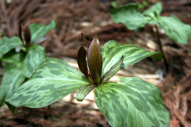 エンレイソウ・クネアツム 【051-018】 ユリ 2019.10.26 炎のように上向きに咲く花。 開花期 3-5月 冬季 落葉 日当たり 明るい日陰 耐寒性 強 水やり 普通 施肥 春・秋に油粕肥料、生育時に有機液肥を2週間に1回程度 用土 山野草の土/基本培養土