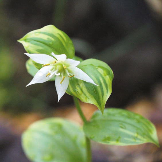 丸葉覆輪チゴユリ 【052-010】 チゴユリ 2019.11.04 丸い葉型で黄爪斑~覆輪となるやや大型品種。 開花期 4-6月 冬季 落葉 日当たり 明るい日陰 耐寒性 強 水やり 普通 施肥 春・秋に油粕肥料、生育時に有機液肥を2週間に1回程度 用土 山野草の土/基本培養土