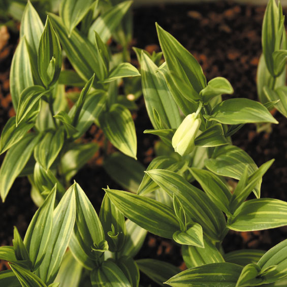 黄覆輪ホウチャクソウ 【055-021】 ホウチャクソウ 2019.11.04 立葉性の黄覆輪タイプ。 開花期 4-6月 冬季 落葉 日当たり 明るい日陰 耐寒性 強 水やり 普通 施肥 春・秋に油粕肥料、生育時に有機液肥を2週間に1回程度 用土 山野草の土/基本培養土