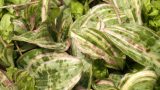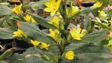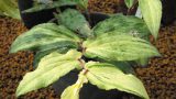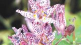 黄覆輪タカクマホトトギス 【056-014】 ホトトギス 2019.11.04 葉幅広くボリュームのあるタカクマホトトギスの黄深覆輪品種。存在感のある逸品。 開花期 8-10月 冬季 落葉 日当たり 明るい日陰 耐寒性 強 水やり 普通 施肥 春・秋に油粕肥料、生育時に有機液肥を2週間に1回程度 用土 山野草の土/基本培養土