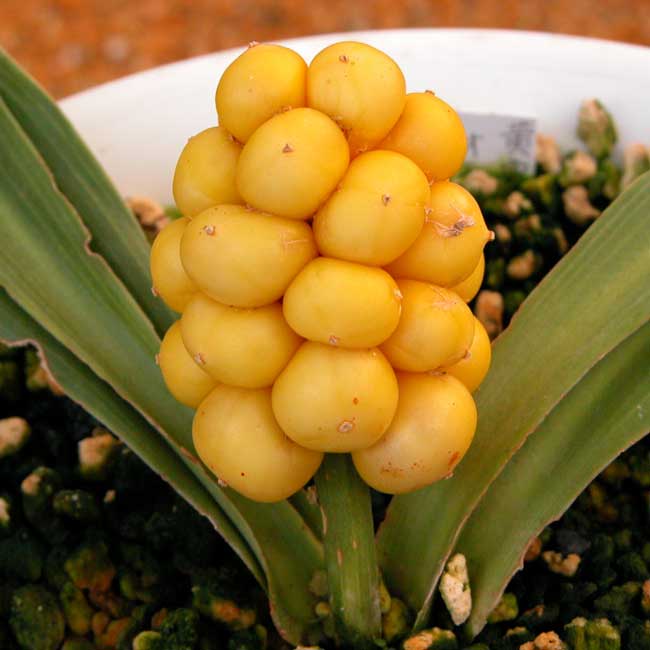 黄実オモト 【057-104】 ユリ 2019.10.26 黄色い実を付ける珍しい選抜品種。 開花期 4-6月 冬季 落葉 日当たり 明るい日陰 耐寒性 中 水やり 普通 施肥 春・秋に油粕肥料、生育時に有機液肥を2週間に1回程度 用土 山野草の土/基本培養土