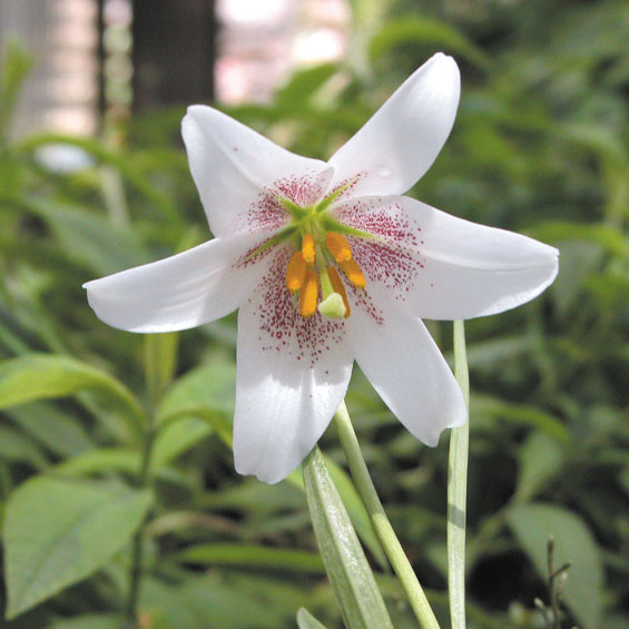 赤霧ユリ 【058-010】 ユリ 2019.10.26 中国産の白地赤点花。珍品。 開花期 5-7月 冬季 落葉 日当たり 日向 耐寒性 強 水やり 普通 施肥 春・秋に油粕肥料、生育時に有機液肥を2週間に1回程度 用土 山野草の土/基本培養土
