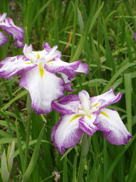 花菖蒲「舞妓」 【301-047】 花菖蒲 2019.11.04 白地合いに紫覆輪の六英咲き。肥後系。 開花期 5-7月 冬季 落葉 日当たり 日向 耐寒性 強 水やり 多め 施肥 春・秋に油粕肥料、生育時に有機液肥を2週間に1回程度 用土 山野草の土/基本培養土