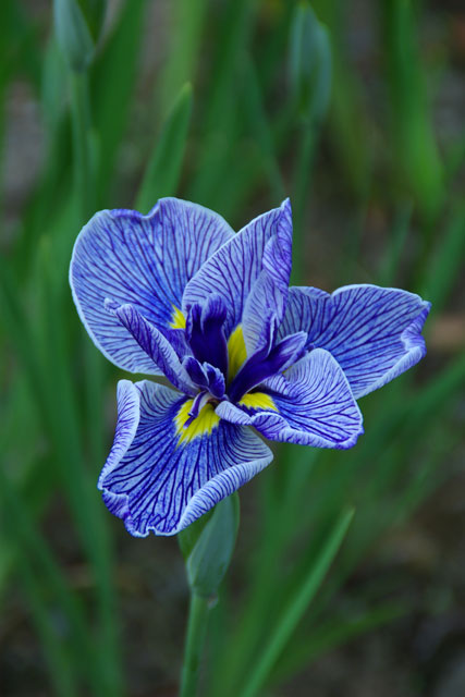 花菖蒲「東鏡」 【301-055】 花菖蒲 2019.11.04 白地に濃い青紫色の葉脈模様。江戸系 開花期 5-7月 冬季 落葉 日当たり 日向 耐寒性 強 水やり 多め 施肥 春・秋に油粕肥料、生育時に有機液肥を2週間に1回程度 用土 山野草の土/基本培養土