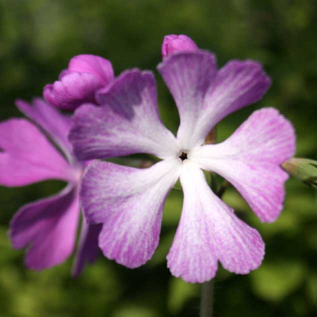 日本サクラソウ「砧」 【302-028】 日本サクラソウ 2019.11.04 基部の細い広桜弁でつかみ咲き。裏は桃で表は白。昭和前期の作出。 開花期 4-6月 冬季 落葉 日当たり 日向 耐寒性 強 水やり 普通 施肥 春・秋に油粕肥料、生育時に有機液肥を2週間に1回程度 用土 山野草の土/基本培養土