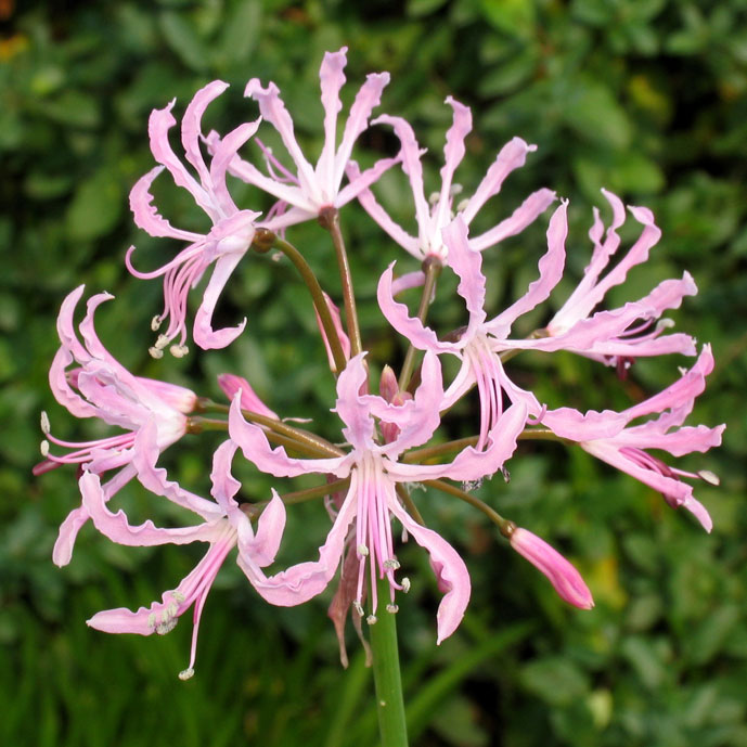 ネリネ・ウンズラータ 【304-002】 ネリネ 2019.11.04 フリルがかった繊細な花弁が特徴の強健種。 開花期 10-11月 冬季 冬緑 日当たり 日向 耐寒性 強 水やり 少なめ 施肥 春・秋に油粕肥料、生育時に有機液肥を2週間に1回程度 用土 山野草の土/基本培養土