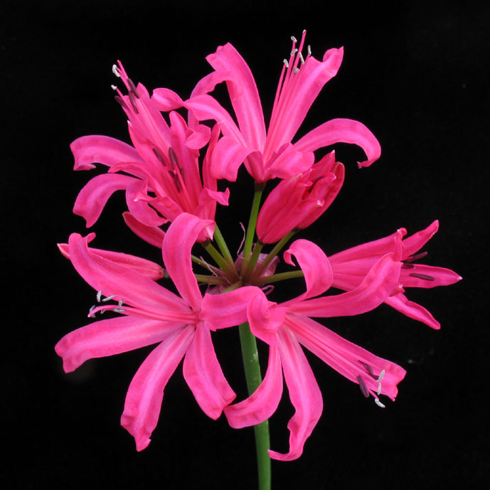ネリネ「ラッシュメールスター」 【304-012】 ネリネ 2019.11.04 蛍光桃紫色の花色が鮮やか。 開花期 10-11月 冬季 冬緑 日当たり 日向 耐寒性 中 水やり 少なめ 施肥 春・秋に油粕肥料、生育時に有機液肥を2週間に1回程度 用土 山野草の土/基本培養土