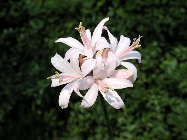 ネリネ「マザー・オブ・パール」 【304-026】 ネリネ 2019.11.04 薄いピンクの花でシベと蕾はピンク。 開花期 10-11月 冬季 冬緑 日当たり 日向 耐寒性 中 水やり 少なめ 施肥 春・秋に油粕肥料、生育時に有機液肥を2週間に1回程度 用土 山野草の土/基本培養土