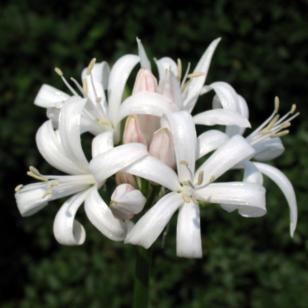 ネリネ「ブラッシングブライド」 【304-039】 ネリネ 2019.11.04 中心部に薄っすら筋の入る白花品種。 開花期 10-11月 冬季 冬緑 日当たり 日向 耐寒性 中 水やり 少なめ 施肥 春・秋に油粕肥料、生育時に有機液肥を2週間に1回程度 用土 山野草の土/基本培養土