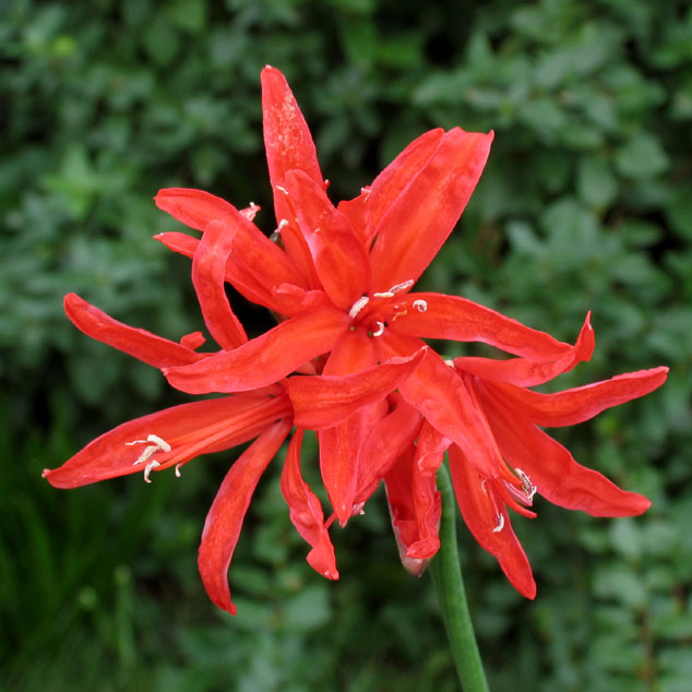 ネリネ「グラマー」 【304-041】 ネリネ 2019.11.04 やや剣弁で鮮やかな赤が特徴。 開花期 10-11月 冬季 冬緑 日当たり 日向 耐寒性 中 水やり 少なめ 施肥 春・秋に油粕肥料、生育時に有機液肥を2週間に1回程度 用土 山野草の土/基本培養土