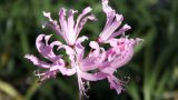 ネリネ「ピーチ・ビューティ」 【304-043】 ネリネ 2019.11.04 桃色がかった明るいサーモンピンク花。 開花期 10-11月 冬季 冬緑 日当たり 日向 耐寒性 中 水やり 少なめ 施肥 春・秋に油粕肥料、生育時に有機液肥を2週間に1回程度 用土 山野草の土/基本培養土