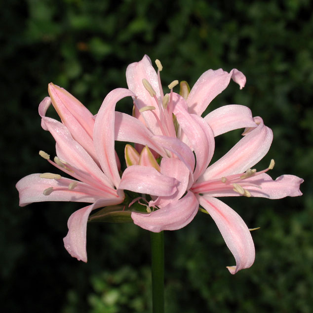 ネリネ「ピンク・サテン」 【304-044】 ネリネ 2019.11.04 桜色の花弁にオレンジの筋が入る 開花期 10-11月 冬季 冬緑 日当たり 日向 耐寒性 中 水やり 少なめ 施肥 春・秋に油粕肥料、生育時に有機液肥を2週間に1回程度 用土 山野草の土/基本培養土