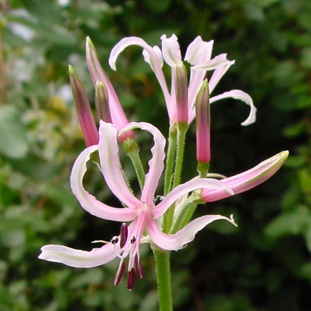 ネリネ・ヒルスタ 【304-053】 ネリネ 2019.11.04 高性でやや反り返る花弁の希少種。 開花期 8-10月 冬季 冬緑 日当たり 日向 耐寒性 中 水やり 少なめ 施肥 春・秋に油粕肥料、生育時に有機液肥を2週間に1回程度 用土 山野草の土/基本培養土