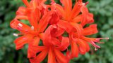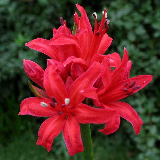 ネリネ「ボルドー」 【304-063】 ネリネ 2019.11.04 弁幅ひろく、濃赤色の情熱的な花色。 開花期 10-11月 冬季 冬緑 日当たり 日向 耐寒性 中 水やり 少なめ 施肥 春・秋に油粕肥料、生育時に有機液肥を2週間に1回程度 用土 山野草の土/基本培養土