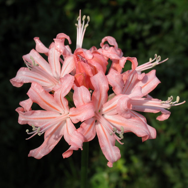 ネリネ「ジル」 【304-097】 ネリネ 2019.11.04 サーモンピンクのカール弁でオレンジのスジが入る。 開花期 10-11月 冬季 冬緑 日当たり 日向 耐寒性 中 水やり 少なめ 施肥 春・秋に油粕肥料、生育時に有機液肥を2週間に1回程度 用土 山野草の土/基本培養土