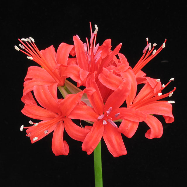 鮮やかな朱赤色の花を咲かせる。花弁がややカールするのが特徴。