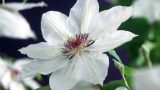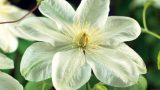 Clematis ‘Duchess of Edinburgh’ パテンス系。白の八重~半八重品種で緑色を帯びる。高さ1.5-3m。花径10-13cm。剪定は弱剪定(グループ2)。