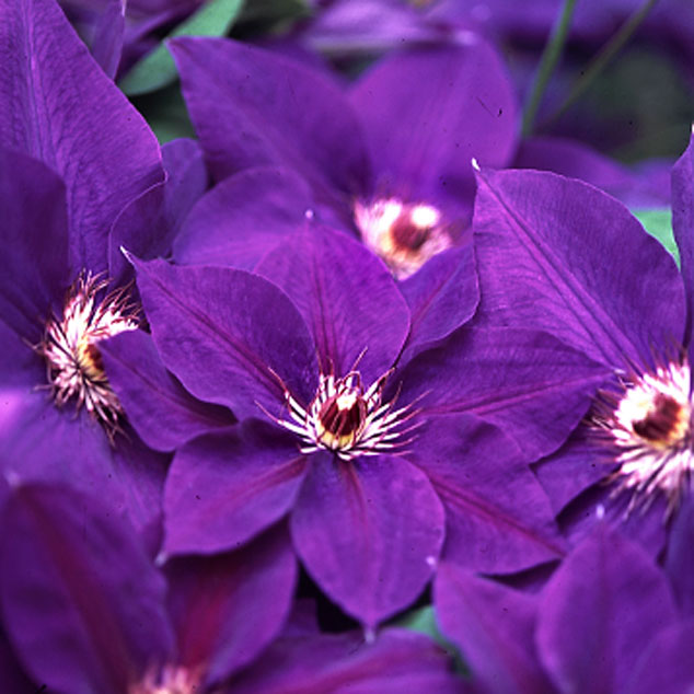 キンポウゲClematis ‘Tsubakuro’ ラヌギノーサ系。深い濃紫色の大輪花。高さ1.5-2m。花径18-20cm。剪定は弱剪定(グループ2)。