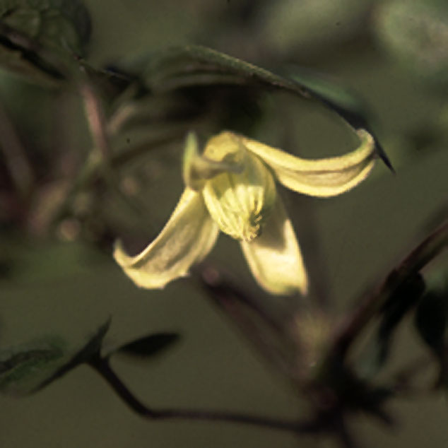 Clematis tosaensis クリーム色の原種で小さめの花を多数つける。高さ1.5m。花径2-3cm。旧枝咲き。剪定は弱(グループ2)。