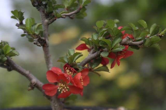 盆栽としても人気があるクサボケの選抜品種。縁起物として好まれる。
