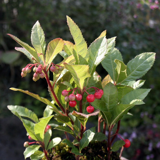 ヤブコウジ「日達丸」 【438-012】 ヤブコウジ 2019.10.26 小型で実付きの良い選抜品種。 開花期 5-7月 冬季 常緑 日当たり 日陰 耐寒性 強 水やり 普通 施肥 春・秋に油粕肥料、生育時に有機液肥を2週間に1回程度 用土 基本培養土/山野草の土