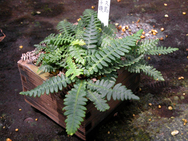 屋久島シシガシラ 【601-054】 その他 2019.10.26 屋久島産の極小型種。 開花期 冬季 常緑 日当たり 日陰 耐寒性 中 水やり 普通 施肥 生育期に有機液肥を2週間に1回程度 用土 基本培養土/ミズゴケ